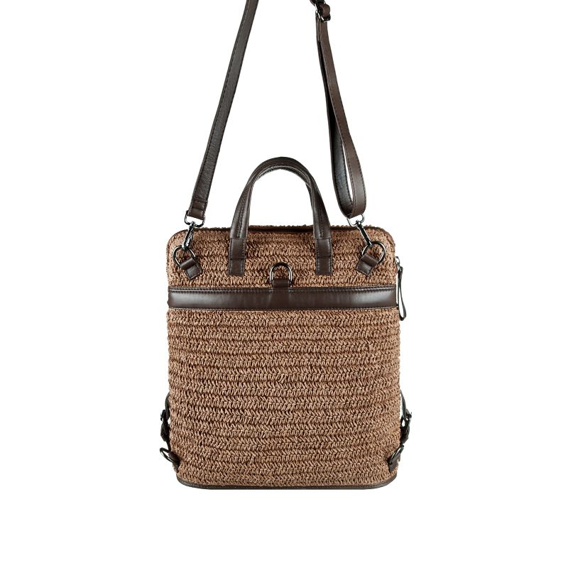 Gefertigt aus echtem Raffiabast, der aus den Blattfasern der Raphiapalme gewonnen und in traditioneller Handarbeit verarbeitet wird, vereint der Rucksack natürliche Materialien mit modernem, wandelbarem Design. Seine Maße von B 32 x H 34 x T 13 cm bieten großzügigen Stauraum für Alltag, Freizeit oder Reise – ohne dabei klobig zu wirken.