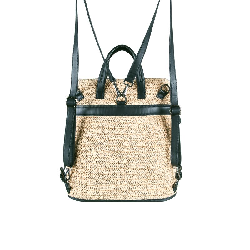 Gefertigt aus echtem Raffiabast, der aus den Blattfasern der Raphiapalme gewonnen und in traditioneller Handarbeit verarbeitet wird, vereint der Rucksack natürliche Materialien mit modernem, wandelbarem Design. Seine Maße von B 32 x H 34 x T 13 cm bieten großzügigen Stauraum für Alltag, Freizeit oder Reise – ohne dabei klobig zu wirken.