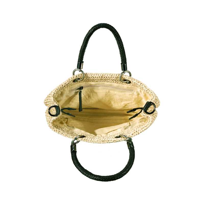 Das Hauptfach der Tasche ist mit einem praktischen Reißverschluss ausgestattet, um deine Gegenstände sicher zu verstauen. Besonders praktisch: Die herausnehmbare Innentasche, die ebenfalls verschließbar ist. So hast du deine Wertsachen immer gut organisiert und schnell griffbereit. Die Kombination aus natürlichem Raffiabast und hochwertigem Leder sorgt für einen robusten, aber dennoch leichten Alltagsbegleiter, der durch seine Materialwahl auch in Sachen Nachhaltigkeit punktet.